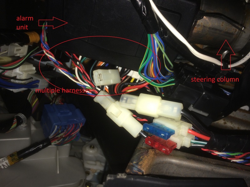 Gathering information for taking out the aftermarket alarm which is draining the battery with a dark current of about 50ma...